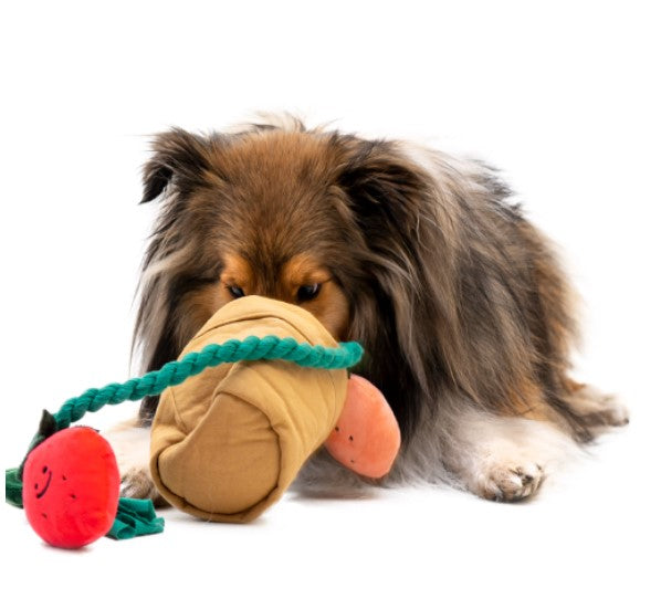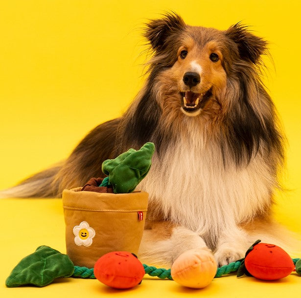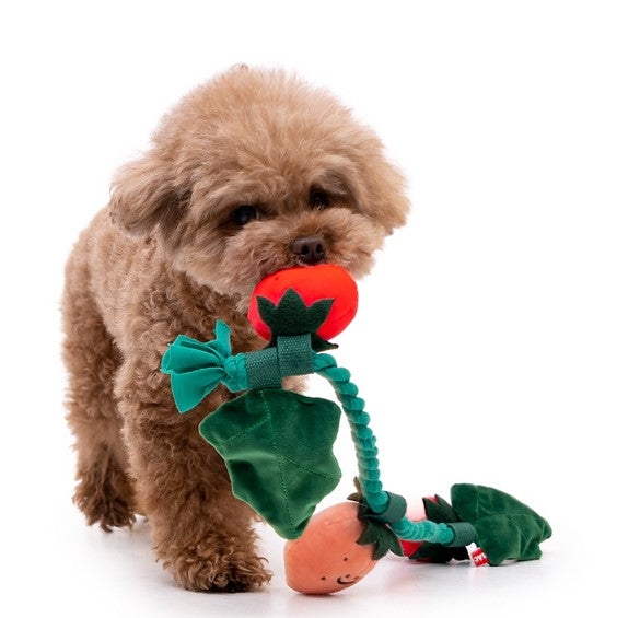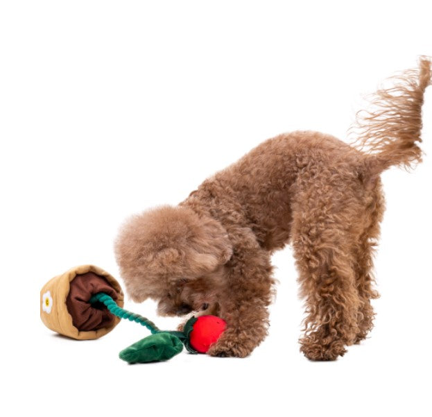 It’s strawberry season, and your dog is invited to join the harvest fun! The Strawberry Tug Toy SetΒ  offers multiple ways to play with layers of interactive excitement. Pull out the vine for a tug-of-war challenge or let your dog hunt for the squeaky strawberries hidden inside the pot. You can even hide treats in the pot to add an extra level of fun and rewards!